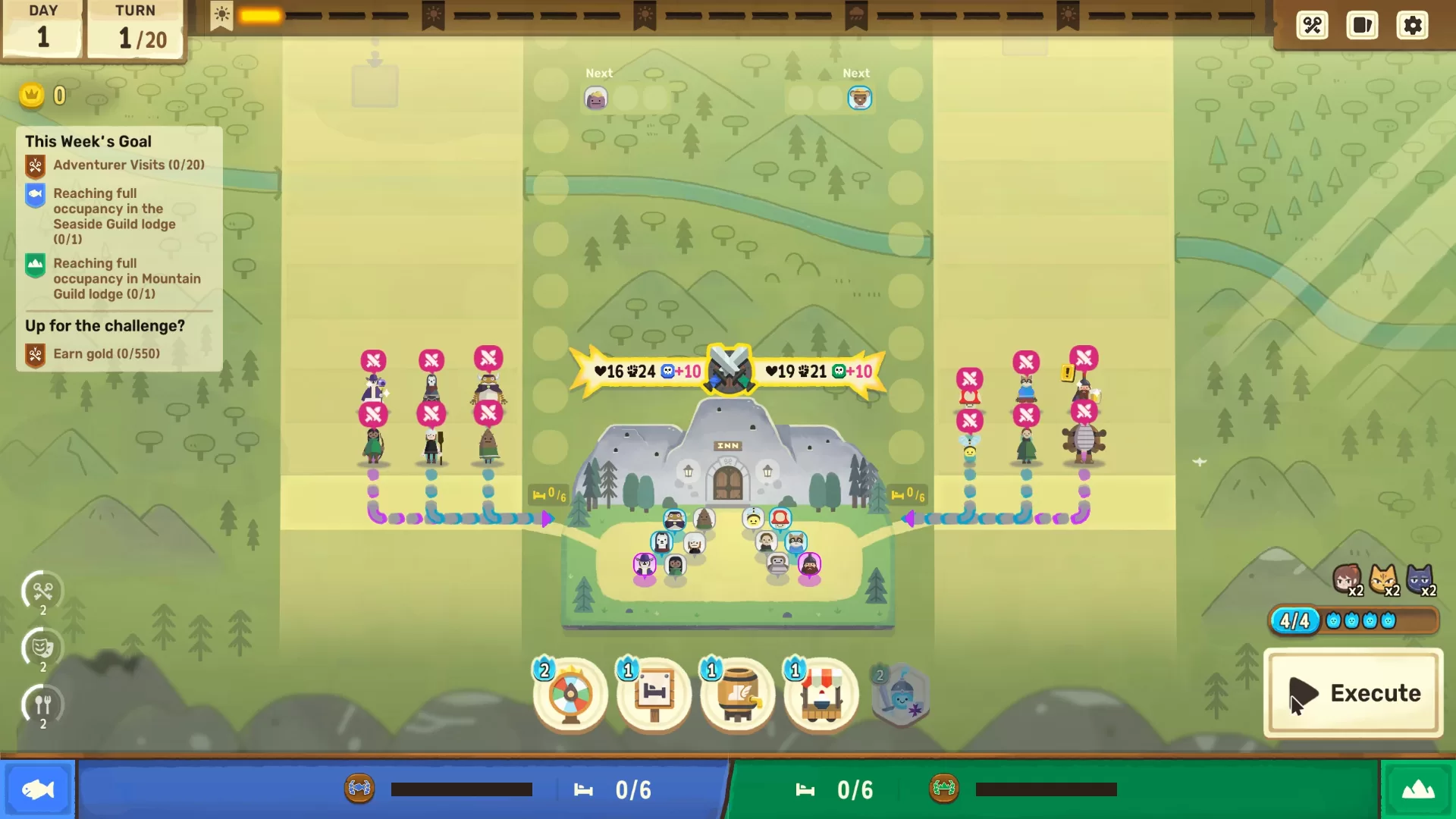 Spiral Up Games is thrilled to announce that Dungeon Inn (Steam page, trailer, press kit), a cozy turn-based inn management game, released today on Steam Early Access at a retail price of 12.99 USD| EUR. In celebration, gamers can take advantage of a special 10% launch discount for the first two weeks after launch. With 4 charming and fun chapters packed full of engaging puzzles and quirky narrative, this game offers at least 5 hours of enthralling cozy strategy management.