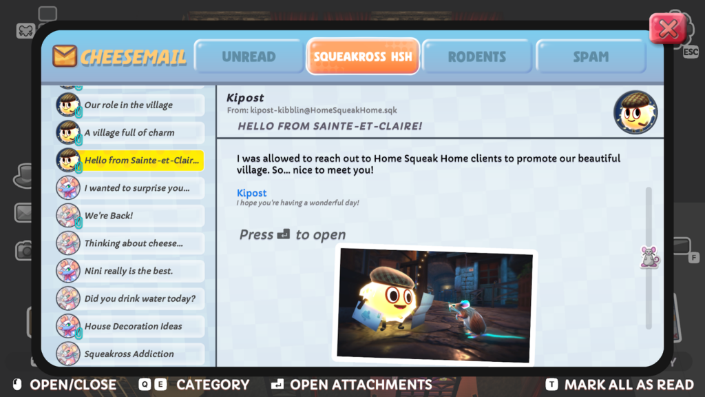 Get ready to sharpen your eye for design with all-new decoration systems; furniture can now be placed on the edges of gridlines as well as on the walls. Players can also express themselves in the Rodent Editor: change your furry friend’s fur color, pattern, tail length, ear size, wardrobe, and more! If you need a break after a hard day’s work, check your Cheesemail Inbox for new messages from Home Squeak Home’s founder, Nini; you may also learn a thing or two about caring for your rodent along the way!